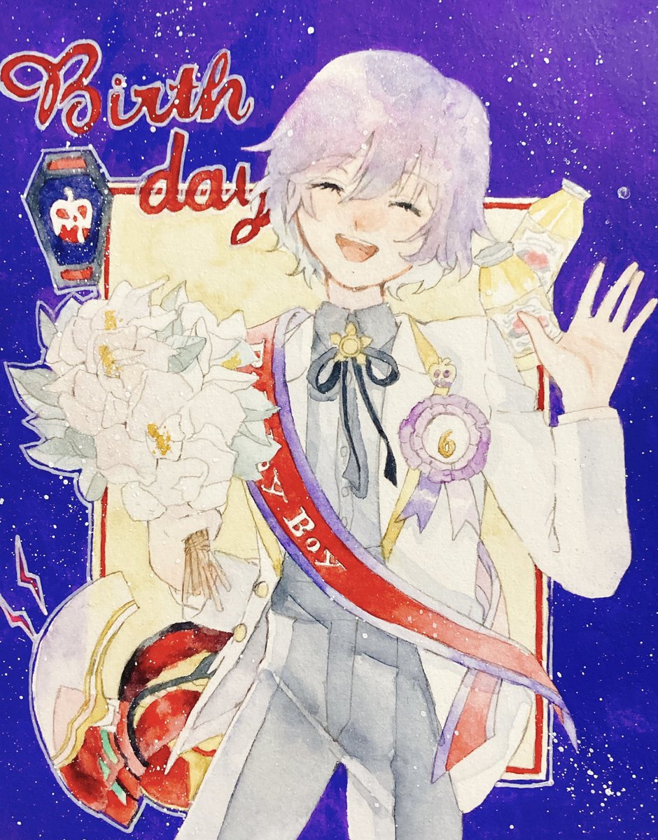 エペルくん誕生日おめでとう!🎂フライングですが、、、 スパッタリングするとき顎に飛んでニキビみたいになってしまった… #エペル・フェルミエ誕生祭2021 #ツイステ