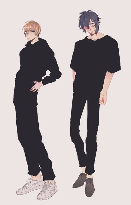 1 8 二振現代遠征ということで線画も色塗りも途中で疲れた落書き🍊🌱 21/08/29 13:35