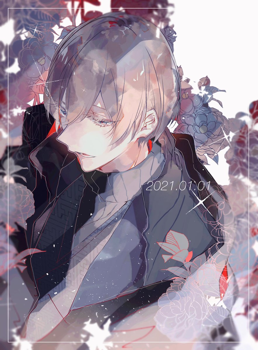 44 522 描き初め 今年も都築京介をよろしく🎭💜 21/01/01 19:32