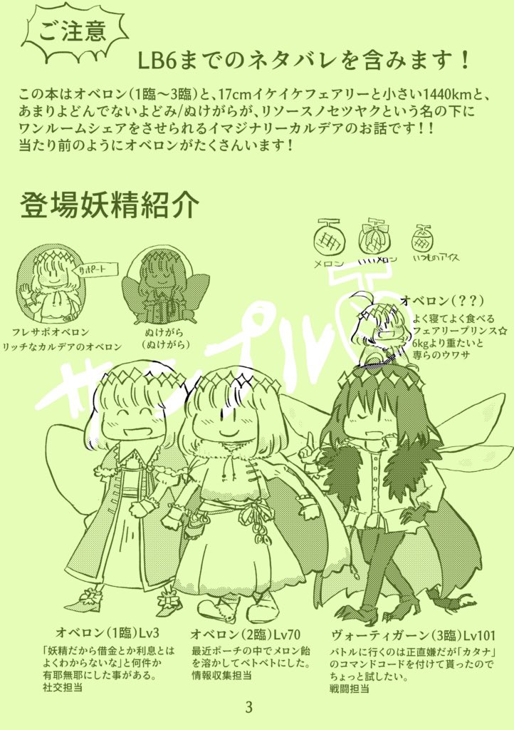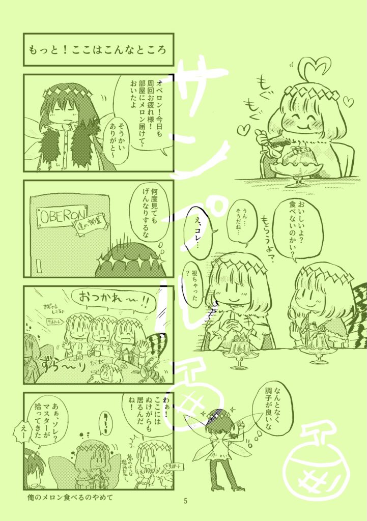 8/21 大阪 オベプチ新刊サンプル スペース 5号館 う59b A5 24p ¥300 1〜3臨とイケイケフェアリーモードとその他色々な妖精がわちゃわちゃするだけの4コママンガ。終始こんな感じ。ネタバレ有。とにかく妖精が多い。よろしくお願いします〜!