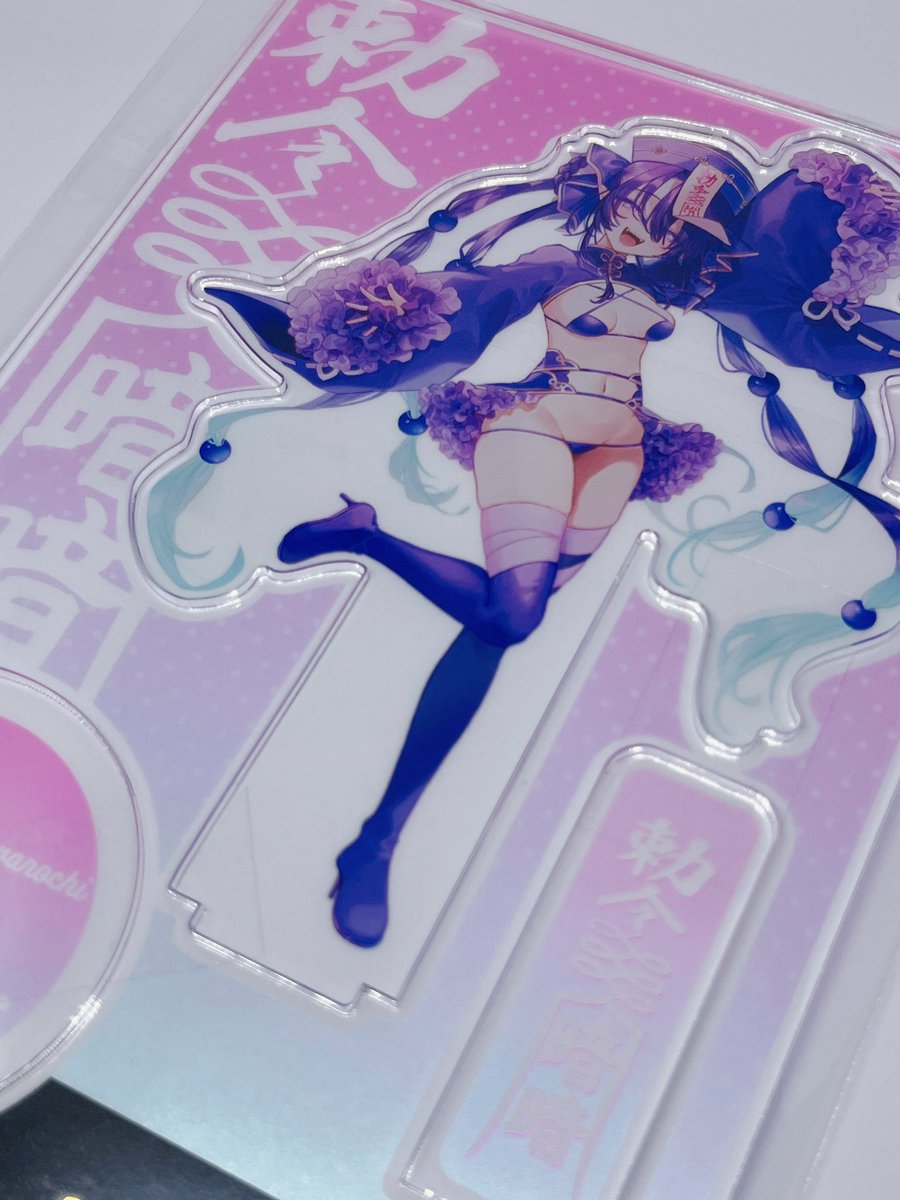 実物届いたので写真です〜 🍓アクリルスタンド🍓 おおきいのとちいさいのがあるよ。 おおきいのはプレート付きです!透明でかわいい 台座と名札はちいさいのを乗せてもいい感じです! #コミティア144 #COMITIA144
