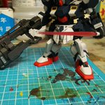 #ガンプラ 頂き物のブランドバッグのような名前のMA、あと少し。 下地無し!ほぼ瓶から直塗り! 旧キットを手間かけずに作るとなんだか懐かしい雰囲気を出せるかなと。 そこっ!手抜きとか言わないぃ