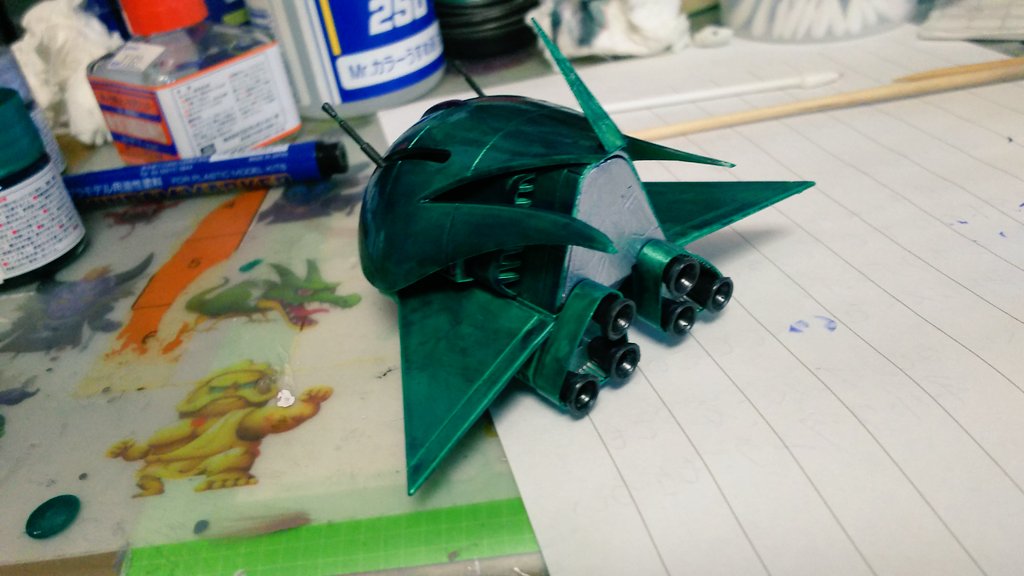 1 29 #ガンプラ 頂き物のブランドバッグのような名前のMA、あと少し。 下地無し!ほぼ瓶から直塗り! 旧キットを手間かけずに作るとなんだか懐かしい雰囲気を出せるかなと。 そこっ!手抜きとか言わないぃ 19/08/04 13:37