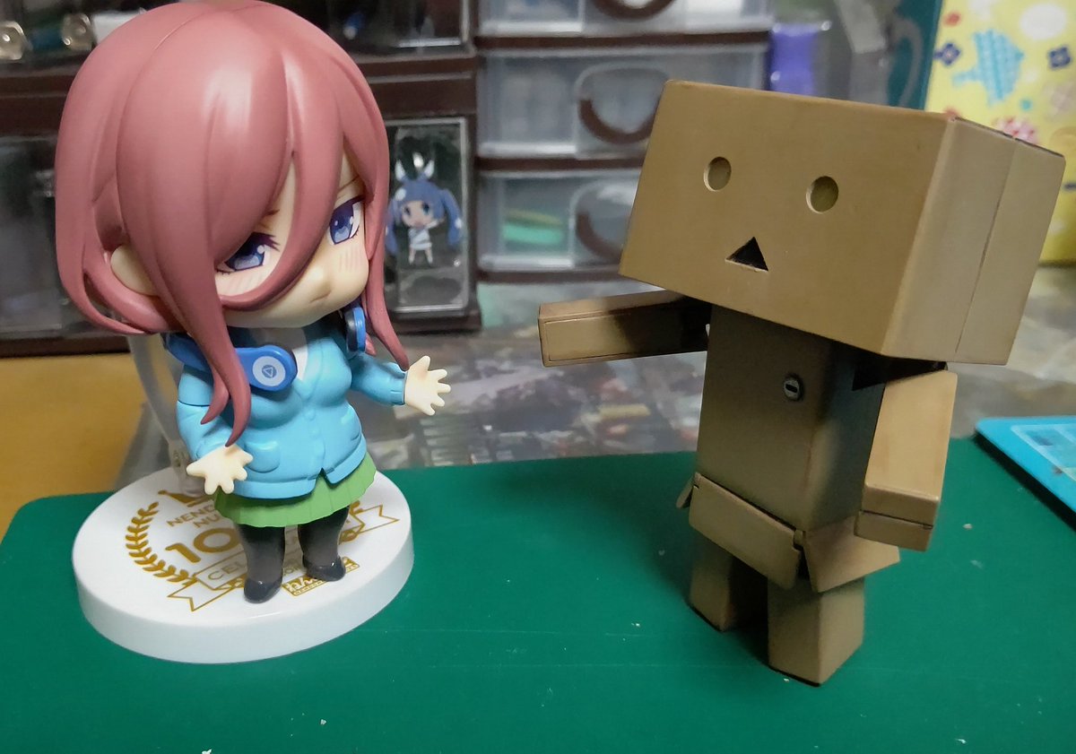 #ねんどろいど #オモ写 何故か、我が家の先住人と出会った。 何故か、両者怒る。 何故か、化けの皮を見つけて和解する。 使用アイテム グッドスマイルカンパニー ねんどろいど1306 中野 三玖 コトブキヤ ミニダンボー BANDAI 掌動 ミミッキュ 12月にはねんどろいどのイーゼルが出ますね。