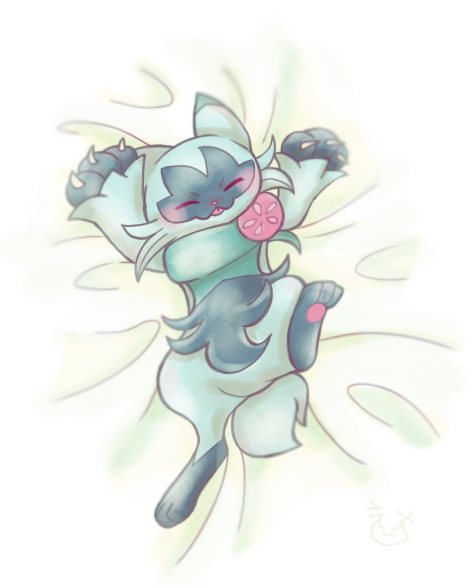 自分で描いてて可愛い~💗って思った! 🌸へそ天&舌ぺろ ニャローテ🌸 #ポケモンイラスト