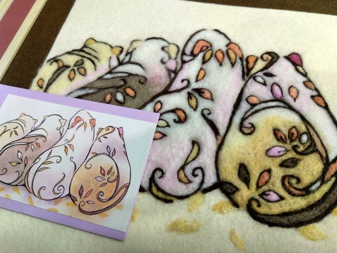 4 21 元が淡彩なので羊毛で色を出すのは、大変だと思うのですよ。線も筆だから幅が均一じゃないし。 しっぽさん@sipponosaki ありがとう! #水彩 #羊毛フェルト twitter.com/sipponosaki/st… 23/03/19 09:29