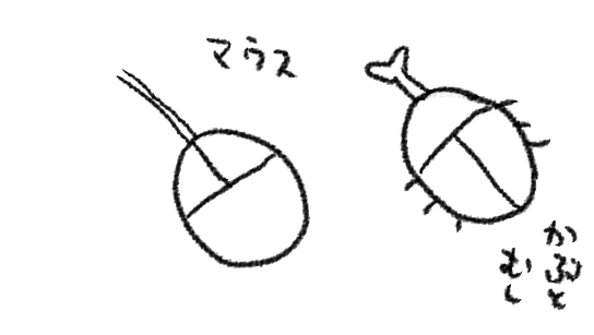日曜日の朝だよ どうでもいいけどわたしの描いたマウスとかぶとむしをご覧よ