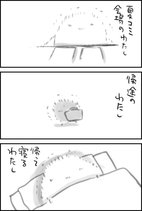 夏コミなんかこんなかんじでしたがスペースまでお立ち寄り下さったかたがたほんとうにありがとうございました ちゃんと人間のふりをできていたかどうか自信がありませんが、ええと…人は人間が7割と言いますから…残り3割は…なんだ…なんかですから…