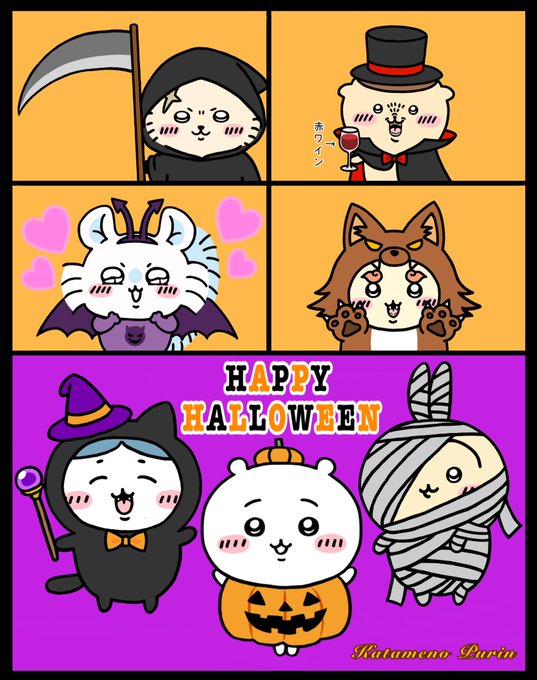 ハロウィンイラスト描いてみました!Twitterにイラスト投稿するの初めてなのでドキドキ…#ちいかわファンアート