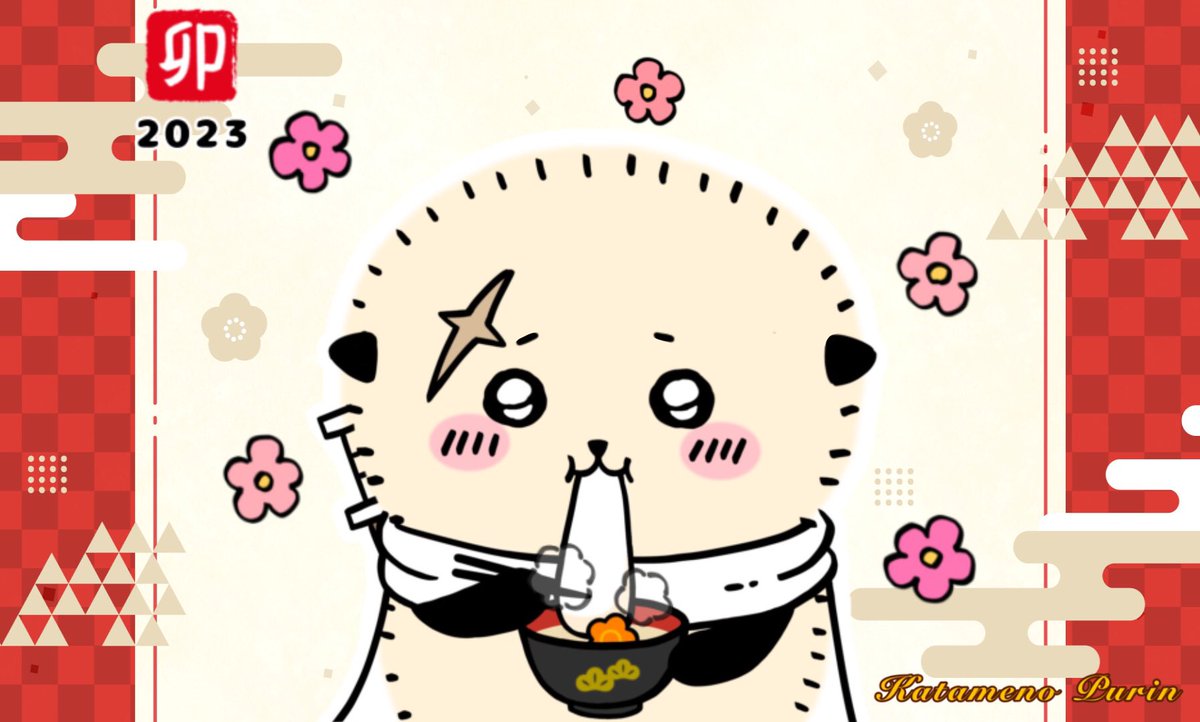 23 203 あけましておめでとうございます㊗️ 今年もよろしくお願いします🙇♀️✨ 餡餅雑煮を食べてるラッコ先生を描きました。 #ちいかわファンアート 23/01/01 00:22