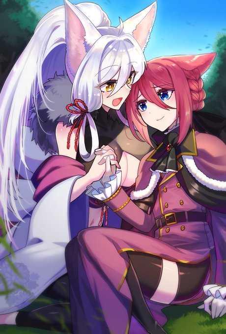 いちゃいちゃするオリキャラさん2人を描かせていただきました!!!お二人共素敵デザインでほっくほく🥰🥰🥰 たんぽぽ隼丸さんのコミッション skeb.jp/@ktss_rgm/work… #Skeb #Commission @skeb_jpより
