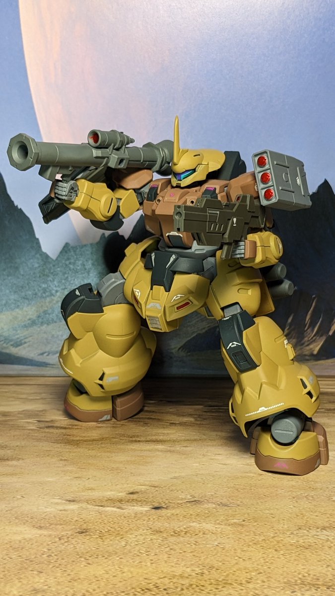 と、投稿も済ませたので ブンドド 地球上、主に砂漠地域においてのテロ鎮圧に仕様される 実戦配備のディランザ 火力が増強され重量も増しているものの、 本的には学園で使われていた ディランザと操作性は変わらない為、 ジェダーク寮出身のパイロットには 特に重宝されている #水星の魔女 #ガンプラ twitter.com/ku6gane0609/st…