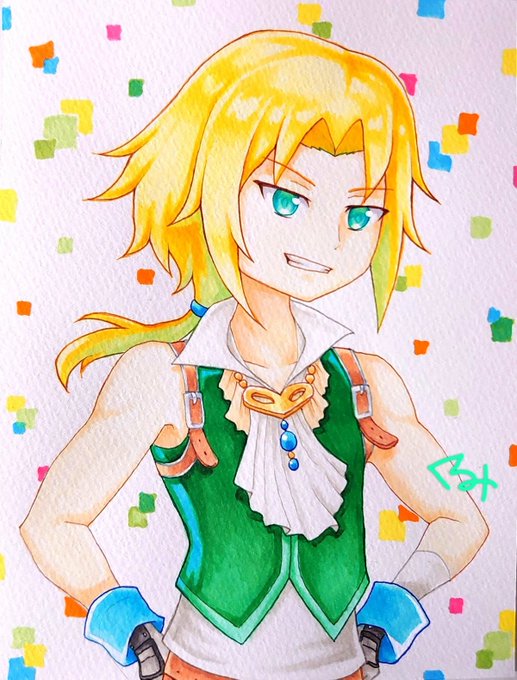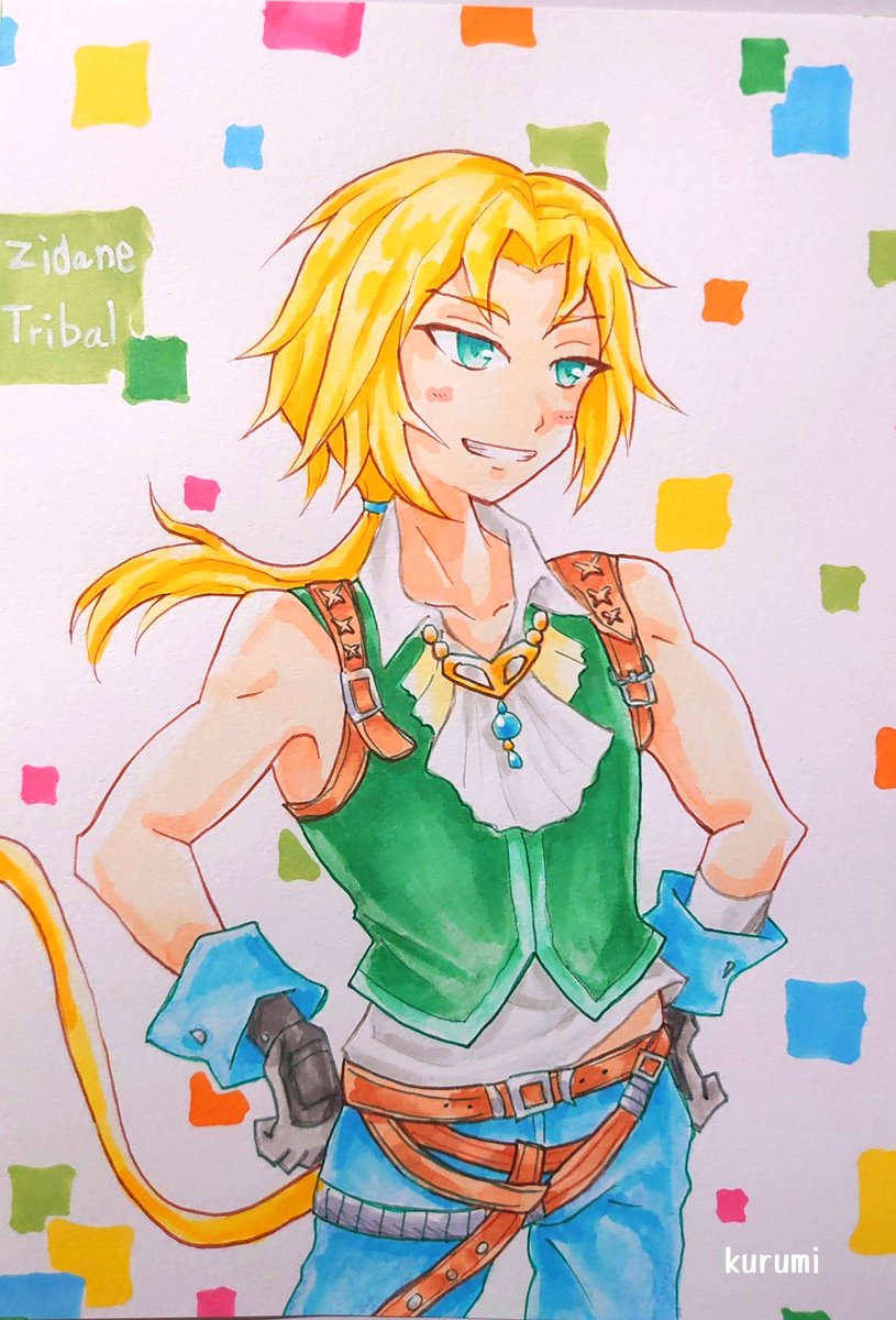19 80 #FF9 #ジタン 去年描いたジタンくんのイラストをリメイクしてみました💚 リメイク前が幼い感じがしたので今回は大人っぽいイメージのジタンにしてます。 (右がリメイクです) 22/05/27 21:15