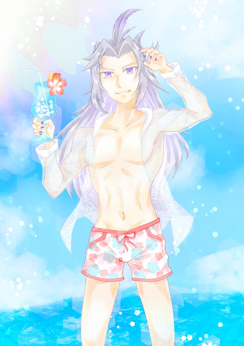 9 32 #FF9 #クジャ 水着クジャくん💜🌺 1枚目はリメイク、 2枚目は過去絵です😊 22/06/07 17:42
