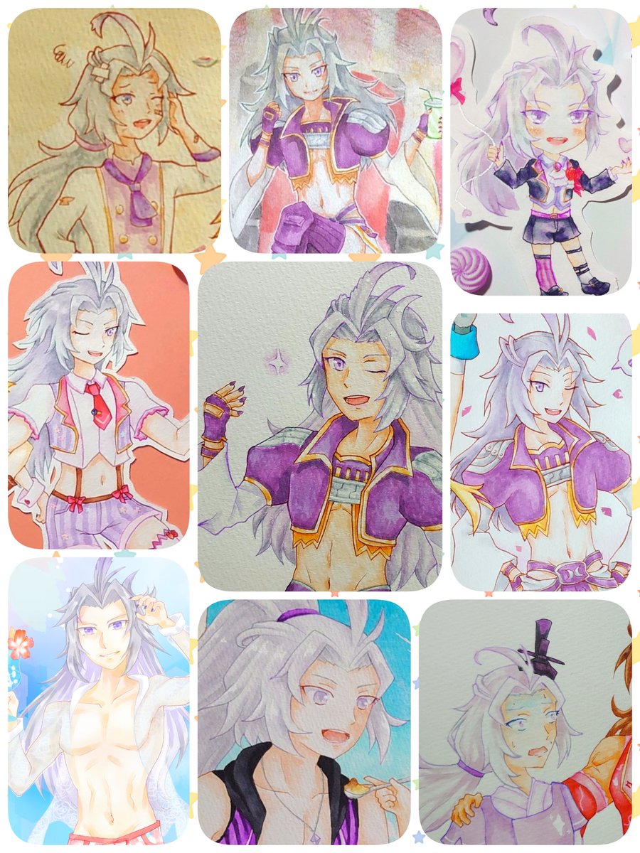 #今月描いた絵を晒そう 5月はフォロワーさんに描いたイラストも含め、8枚描けました〜🥰 最近の推しが描けて大満足💜💛🩵❤️