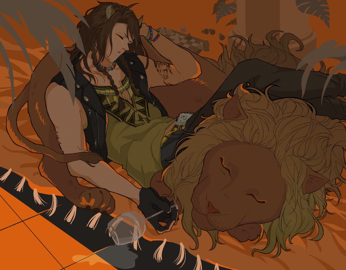 「ダ~!もうっ!!!なんでうちの大きな猫チャンはすーーーーぐに着崩しちまうんッスかねぇ……」 #レオナ・キングスカラー誕生祭2021 #おじ誕 #ツイステファンアート