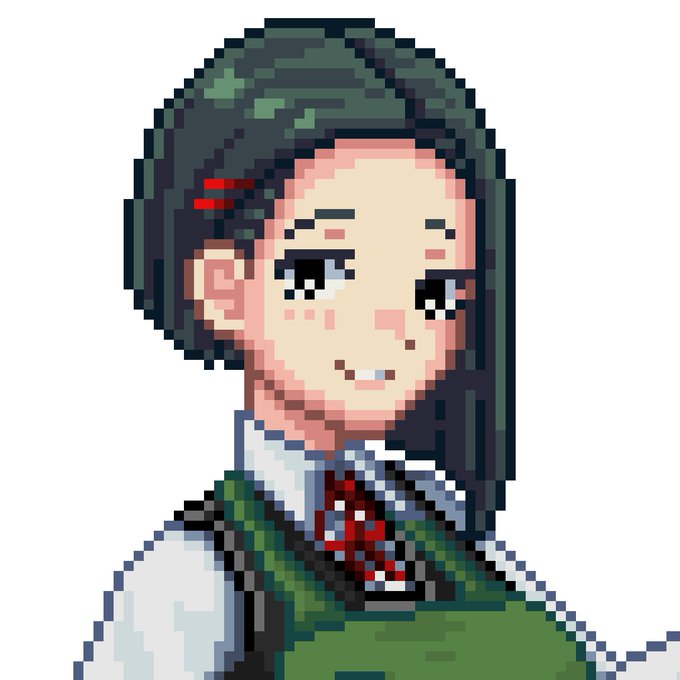 カフェの店員さん! めっちゃ好きな顔描けた🥰 #pixelart #ドット絵 #女の子イラスト