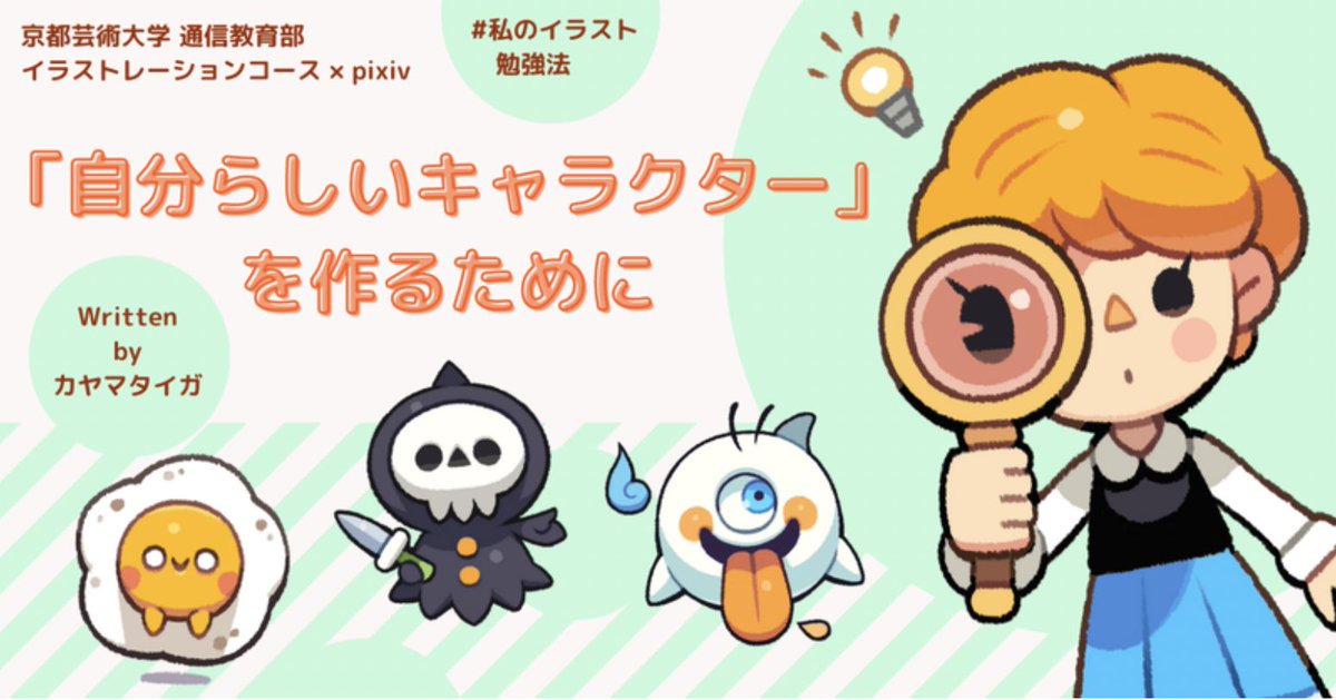 京都芸術大学 通信教育部 イラストレーションコース × pixiv 🎄note KUAイラストアドベントカレンダー2022🎉 12月17日はカヤマタイガ先生から『「自分らしいキャラクター」を作るために』です! #私のイラスト勉強法 note.com/kua_illustrati…