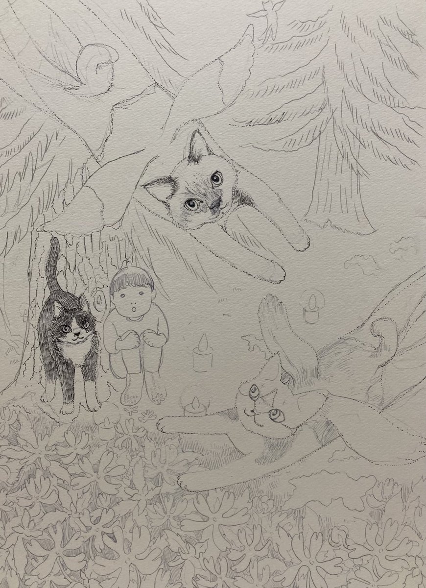2021年11月開催のgallery hydrangea様企画公募グループ展『猫が眠る街』に出展させて頂きます。 もうここにはいない飼い猫や現在も頑張って暮らしてる飼い猫をモデルに、ペン画を進めています。 さまざまな作家さんの猫の作品が楽しみです。 猫はいいなあ。 #猫が眠る街 #galleryhydrangea #ペン画