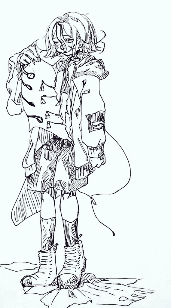 #inktober2020 #UTAU_pic "bulky"乃音ノスミ お洋服汚れたときに洗えないので破いてたら良いなの妄想