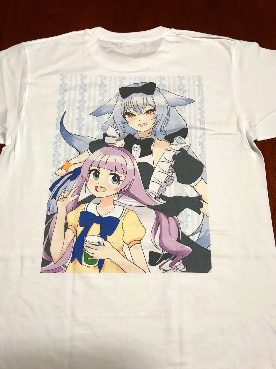 何かしらサプライズを用意したいなと思ってTシャツを作りました! 二人ともめっちゃ反応良くてひと安心。 緊張したけどめーっちゃ楽しかったです、ありがとうございました!🥳 #もちひよアート #わたげの画狼 #バーチャル売り子