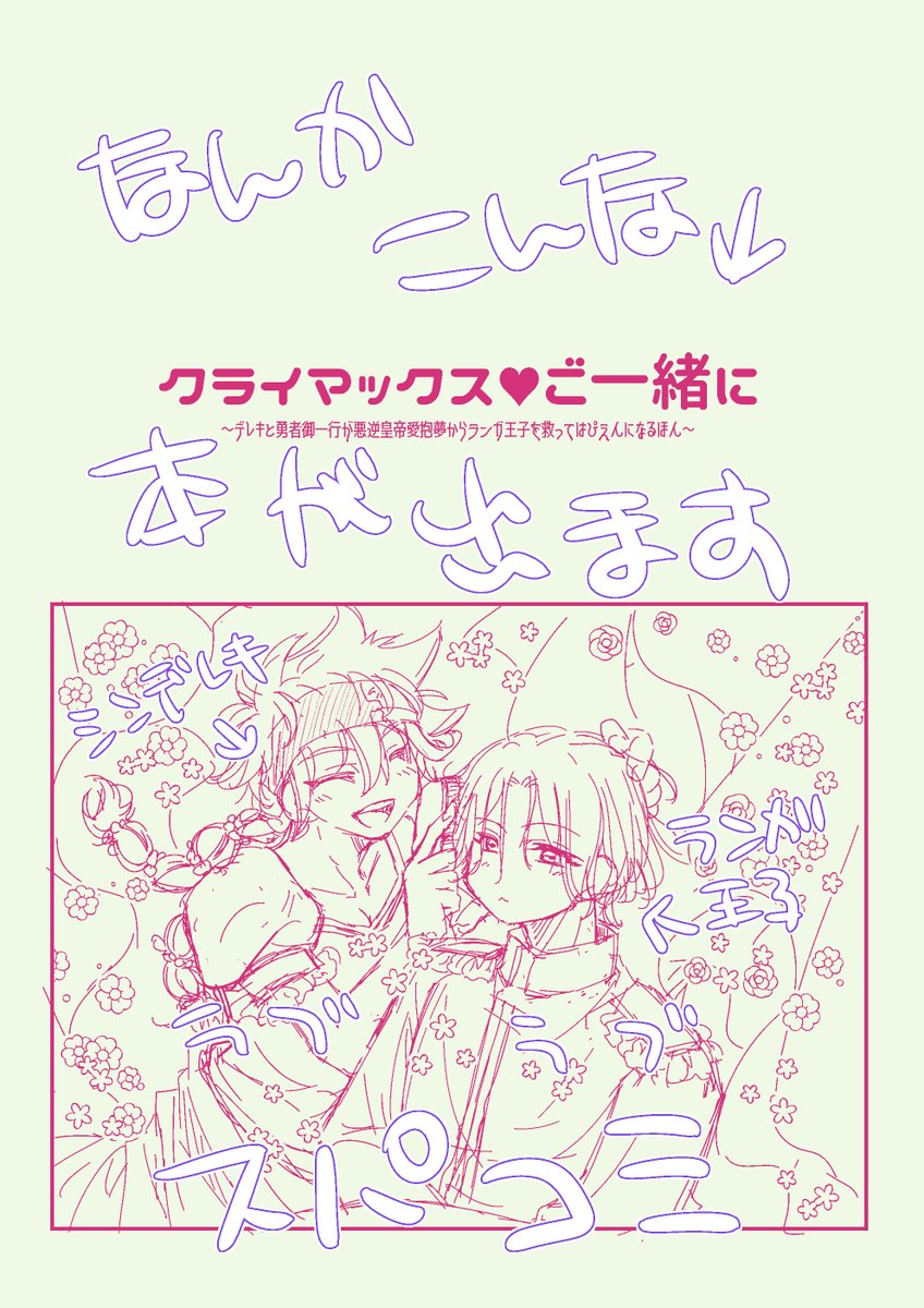 スパコミ新刊❄️🌺描いてみたかったデレキ~画面がやかましいどたばたらぶこめ系えっちが入るかは正気を失えるかにかかってる(笑)個人誌でこぴ本です💒ランガ王子❄️ぱやぱや顔ないめーじ👶