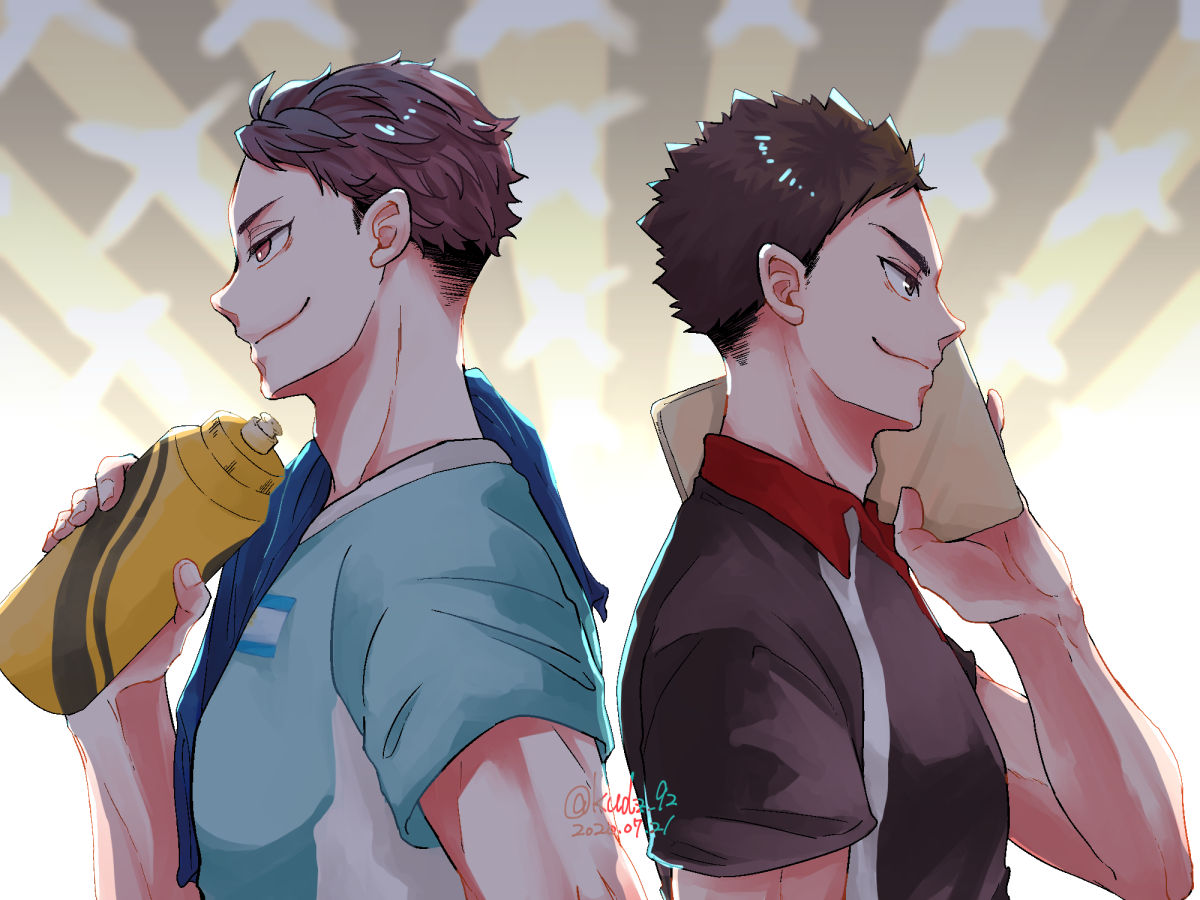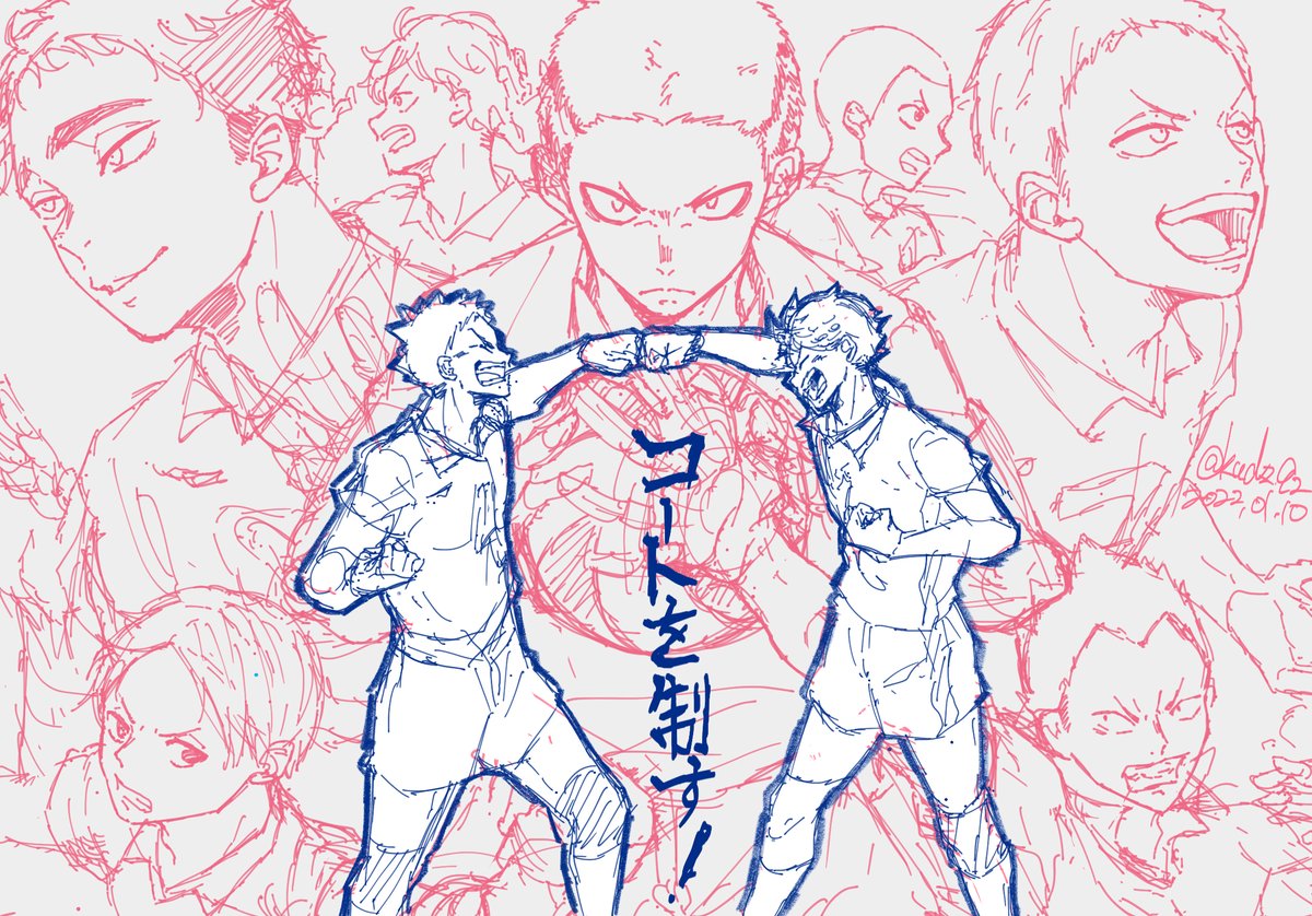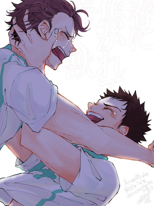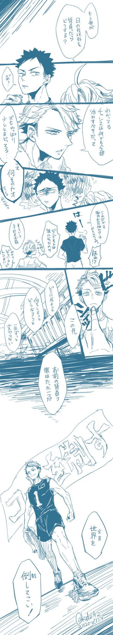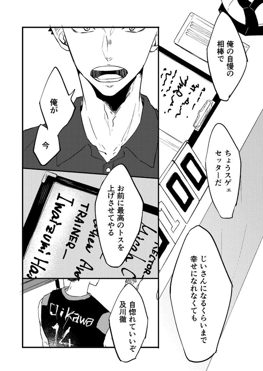 繋げた 言わないと絶対分からないと思うから説明しちゃうけどループになってて、トレーナー岩ちゃんと代表及川が正面向かっていつか会えるように描きました(一応)