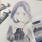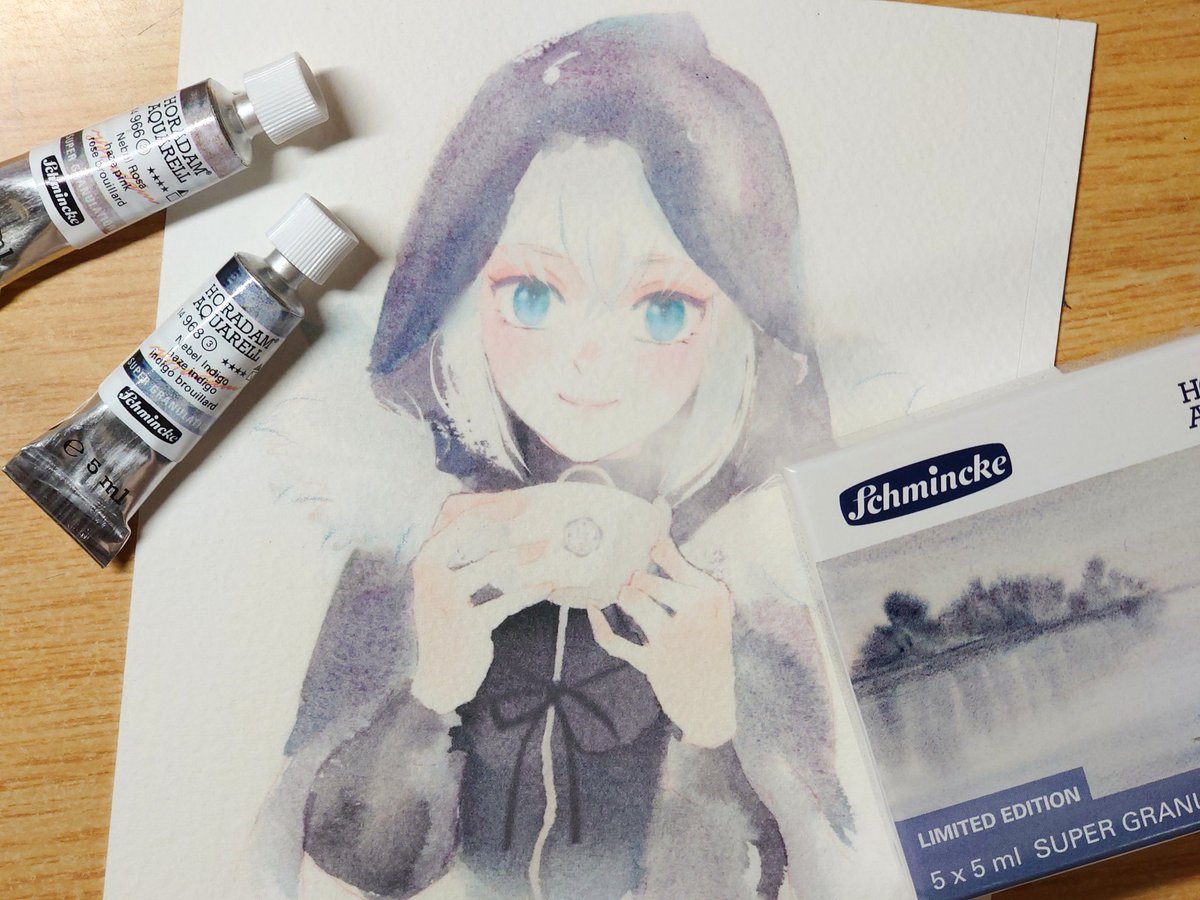 シュミンケの限定色HAZEキター!早速グレイたん描く。 ひと塗りでこの数色のグラデーション…コスメレポみたいだけどほんとすごい✨ #シュミンケホラダム #透明水彩 #watercolor #ロード・エルメロイ2世の事件簿