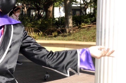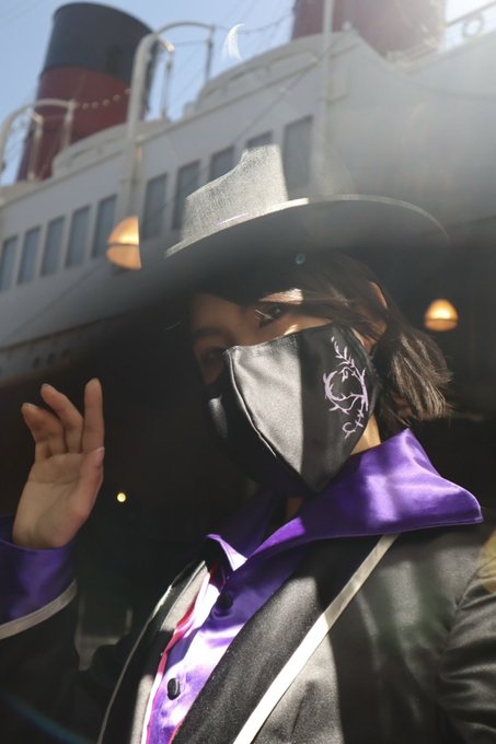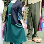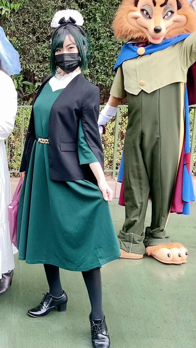 本家と比べるとこんな感じ 白襟 タイツ 靴とか細部を合わせつつ私服っぽいコーデにしました 本当は地毛染めて髪も合わせたかったけど外出控えたくて緑ウィッグをアップスタイルにまとめて代用 twitter.com/kuga_malfi666/…