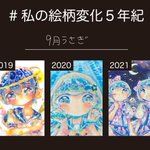 #私の絵柄変化5年紀 テンプレお借りしました(´ω`)