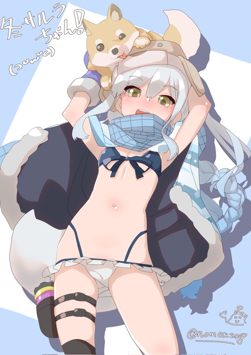 #くそ寒いので水着絵を貼る 誕生日に描いて貰った絵が完璧に適役🐶