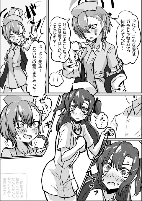 836 2462 ナース服を着て欲しい先生 VS なんだかんだ着てくれるネル VS 仕方ないから一回だけと念を押して着るユウカ #ブルアカ 22/08/23 21:51