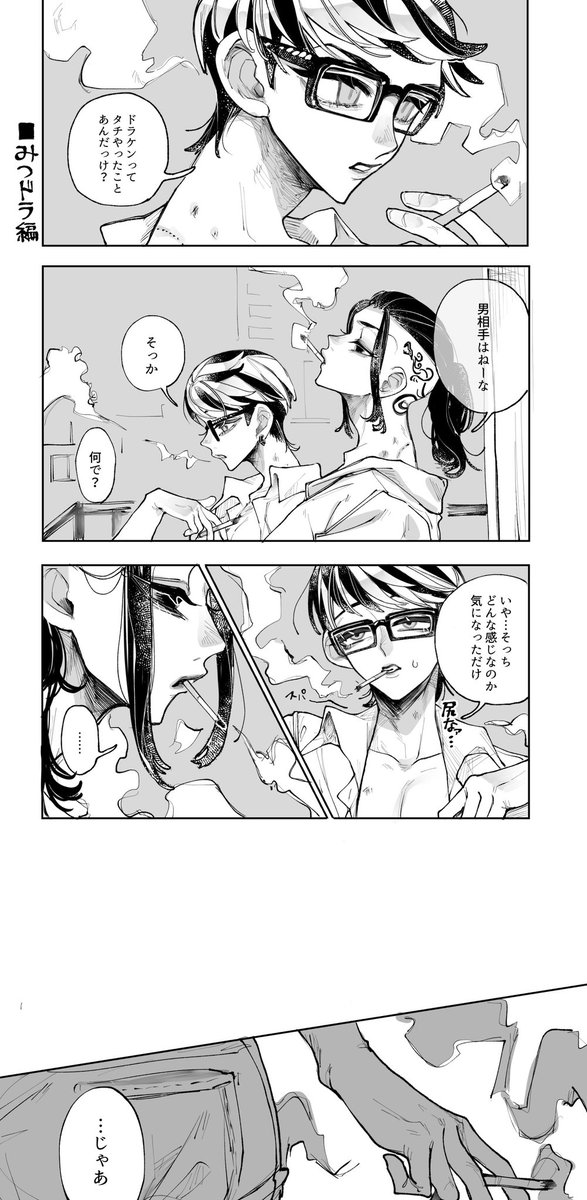 TOKYO罹破維武3 新刊サンプル② 『竜穴』B5/82p/1000円 みつドラが同棲する話 表紙の加工は銀の箔押しと特殊紙(新星物語)に、地に落ち愛を求めさまよう龍を表現した重いベルベット(PP加工)です 長めサンプル▼ pixiv.net/artworks/96177… 通販予約開始してます(🐯)▼ ecs.toranoana.jp/joshi/ec/item/… (1/3)