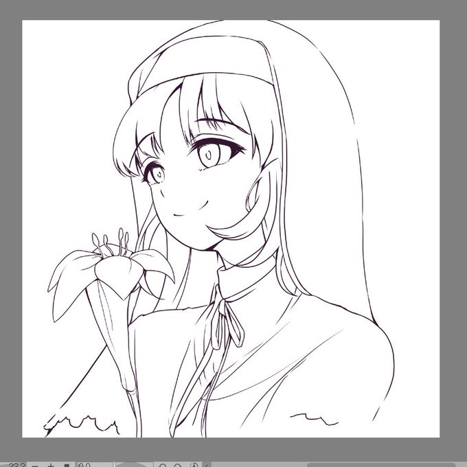 3 7 《備忘録718日目》線画 明日完成予定! ラフからかなり線が減ってすっきりしたイメージ。 #イラスト 23/04/01 23:33