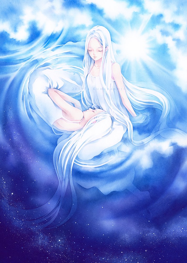 41 255 あお(アルシュ/透明水彩) あおに包まれるイメージで描きました。 19/04/23 22:32