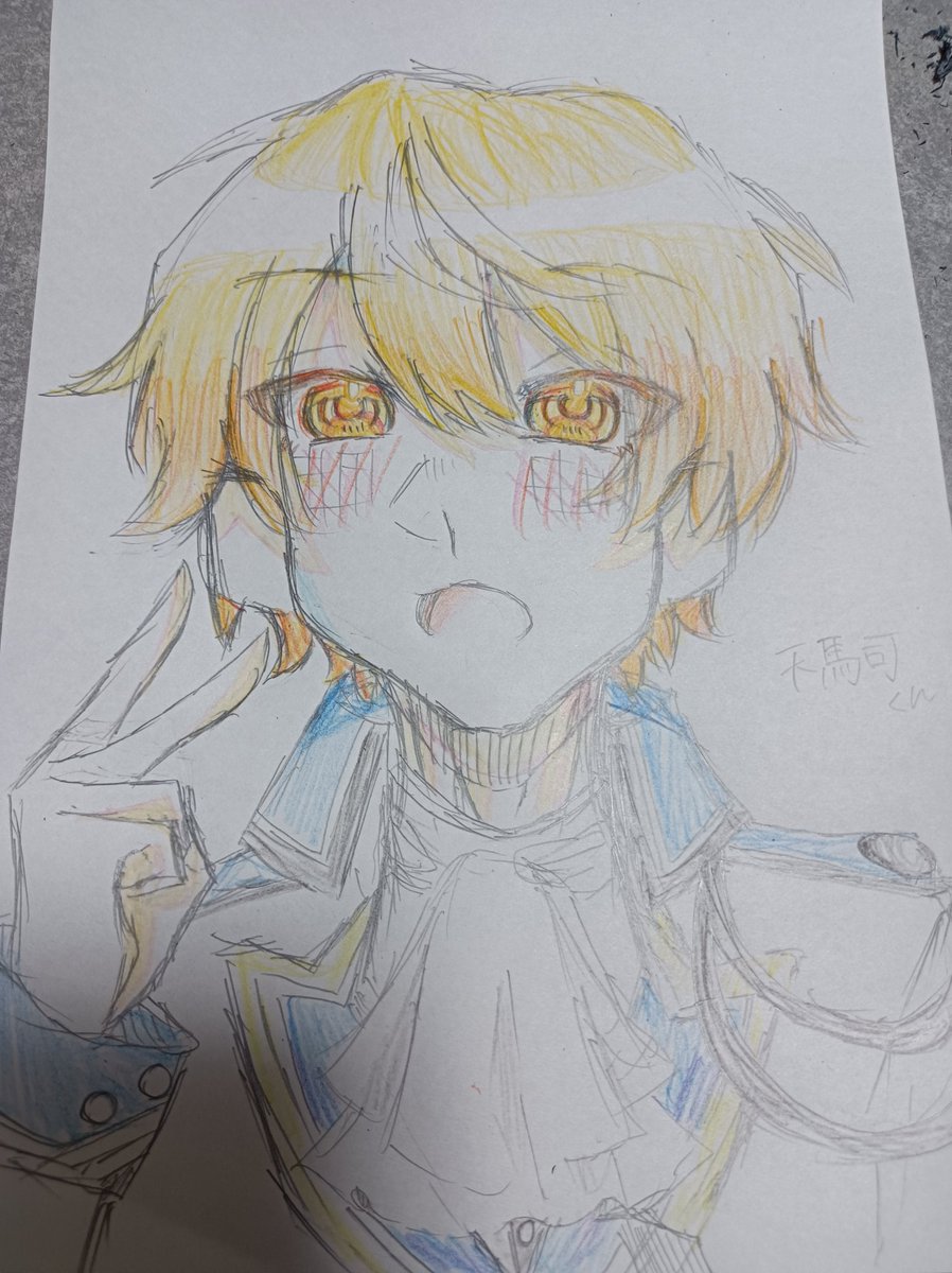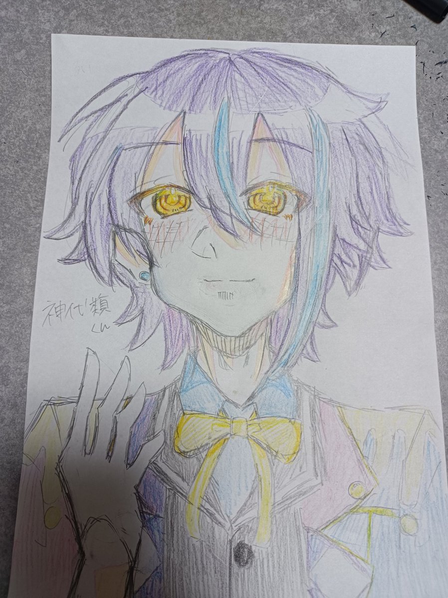 久しぶりにアナログてこんな頑張って描いたかも知れません… #Prsk_FA #神代類 #天馬司