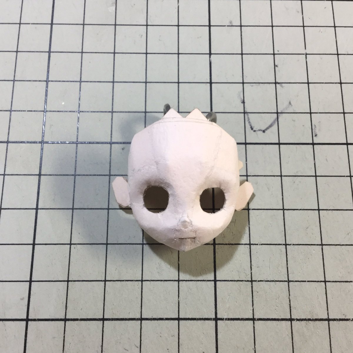顔ベースの上に沿って擬似筋肉パーツを配置⇨表皮パーツを接着⇨ゴニョゴニョして完成。 取り敢えず実用レベルまできた気がする(*゚▽゚*) #ペーパークラフト