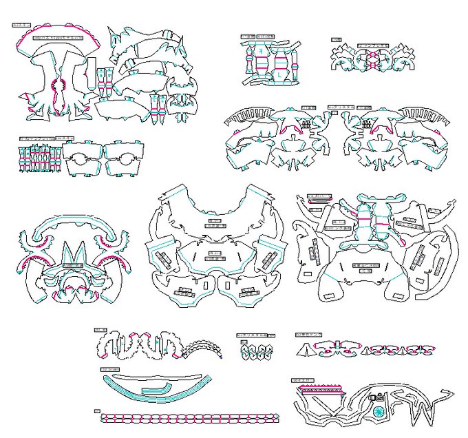 シャミ子危機管理フォームの展開パターンが描きあがった!今回はレーザー加工機に頑張ってもらうので、デジタル作業はここまで。#ペーパークラフト