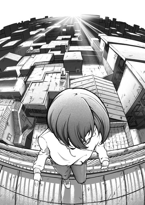 基本白黒のパース効いた絵を描いてます #画像を4枚晒したらrtがきてフォロワーがぶわーって増えると聞いて