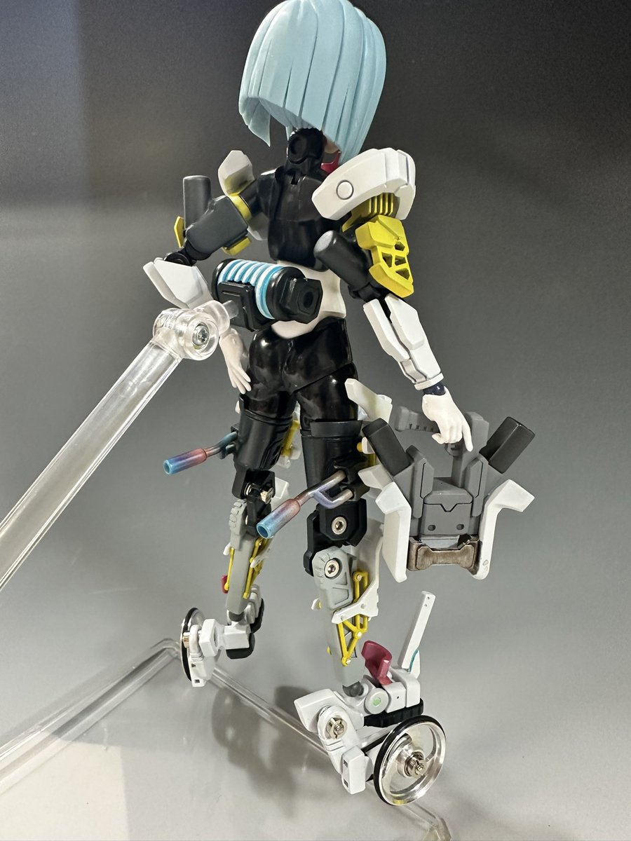 新作その1 "ハイウェイスター"🚲 #メガミデバイス 用武装セット 前回のブンノイチで脚部とバックパックのみだったのを、 腕 胸 そして新規バックパックを足したフルセットになります。 おまけで銃🔫もついてきちゃう! #AKガーデン twitter.com/kujo_kiriko/st…