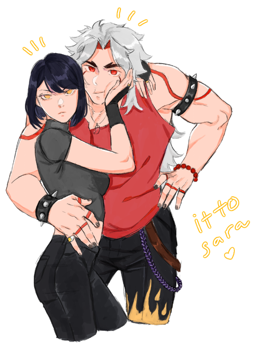 My attemot to draw leather was not very successful 😵 I kept drawing sara in tight croptop because I can't see her wearing anything else and I refuse to draw their canon clothes 🤒 #ittosara #genshinimpactfanart #GenshinImpact