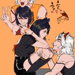 Itto x Sara modern au: beefy biker husband picked his hot wife up from her work and they talked about his favorite bug while walking home🤭 #ittosara #genshinimpact #genshinimpactfanart