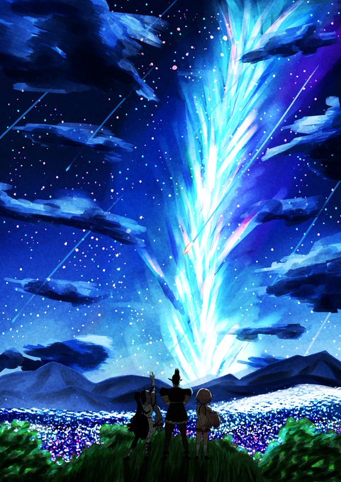 流星群ですよ~椎名せんぱ~いぇあ きれいやなぁ~ 流!星!群! #れなの鳥っくあーと #しいなーと #お花畑青空大写生大会