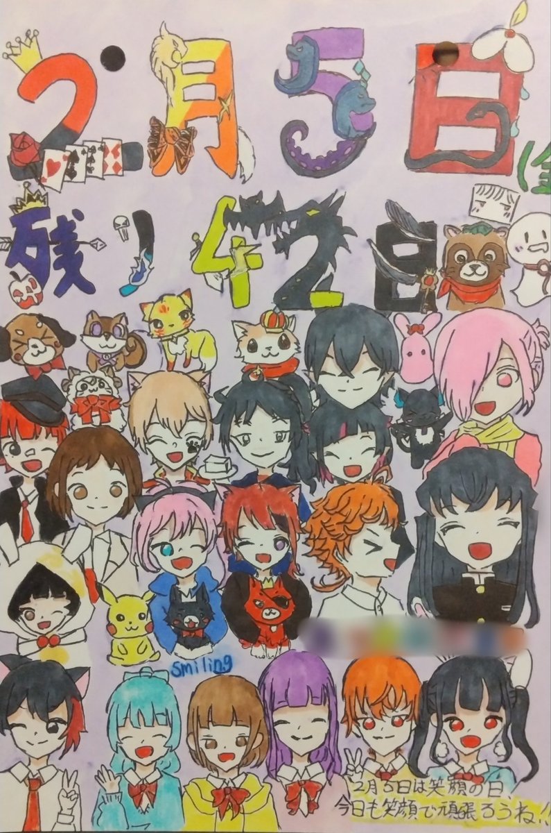 ⚠色んな要素詰め込み⚠ 昨日の日付だけど… 学校の課題、日めくりカレンダーです! 急いで描いたので所々雑ー 見せたかったんだ! ぼかしてる所は行事書いてる〜 #イラスト好きな人と繋がりたい #笑顔の日 #絵描きさんと繋がりたい #ツイステ好きな人と繋がりたい #ツイステファンアート