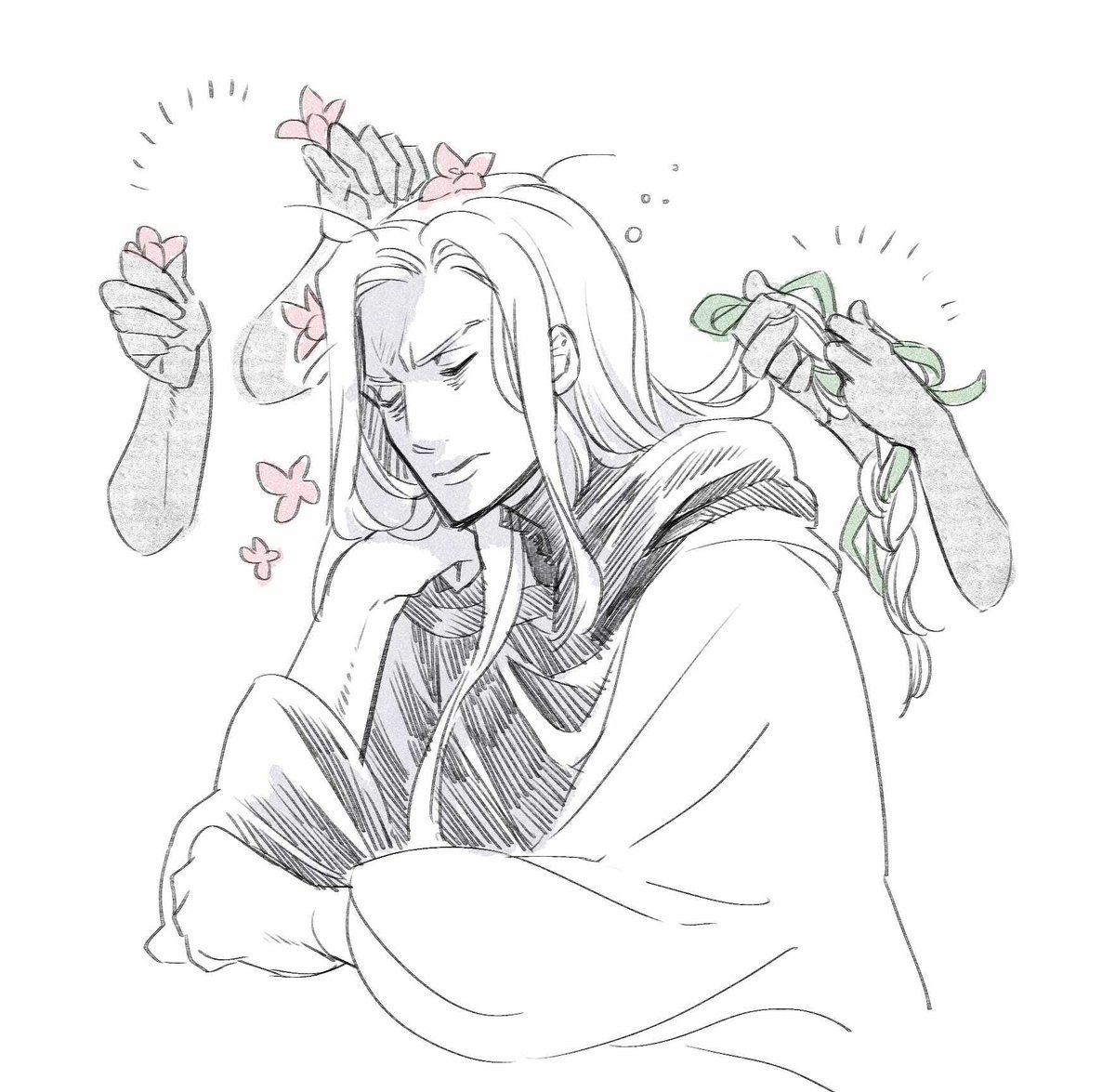 研究室こもってる間に髪が伸びっぱなしになった上に転寝してる所を見つかって玩具にされている古代の図