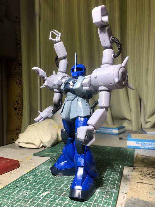 #6月になったのでフォロワーさんに自己紹介しようぜ 3Dプリンタの可能性に魅せられ、ジオラマ製作に心を踊らせ、妻に置き場所で詰められる人です😝 サークル #プラモアートLABO 所属💪 1枚目は製作中のMGザクⅠ❗️ 今日は過去の印刷ミスパーツを各所にペタペタ貼り付けました♪(エコだね😇