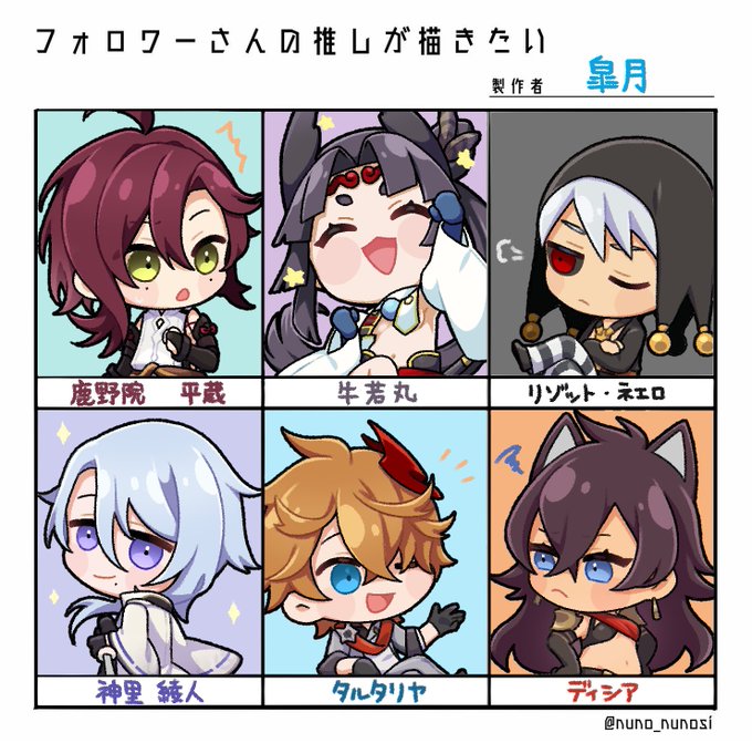 新刊に載せたデフォルメキャラだけ見てする いっぱい描きました💪 #FGO
