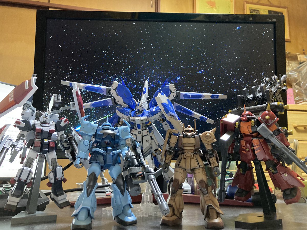 #今月作ったプラモ晒そうぜ #ガンプラ 信じてもらえないかもしれないけどコレ全部3月に作ったガンプラ(笑) RGサザビー RGユニコーン HGフェネクス HGジェスタ HGジムスナイパー HGデミトレーナー HG陸戦型ガンダム