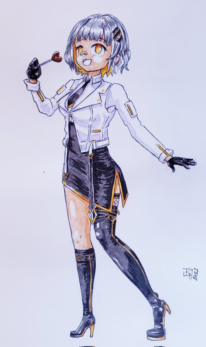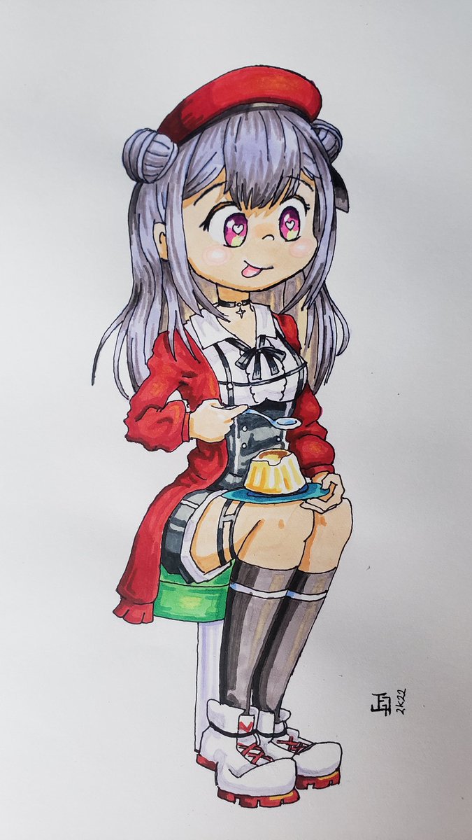 Day 13 Finalmemte terminado! Hina comiendo un pudín para mantener su puni puni 😁 #MisopaArt #HinaMisora #vnekoctober #VtuberES #markers #inktober2022