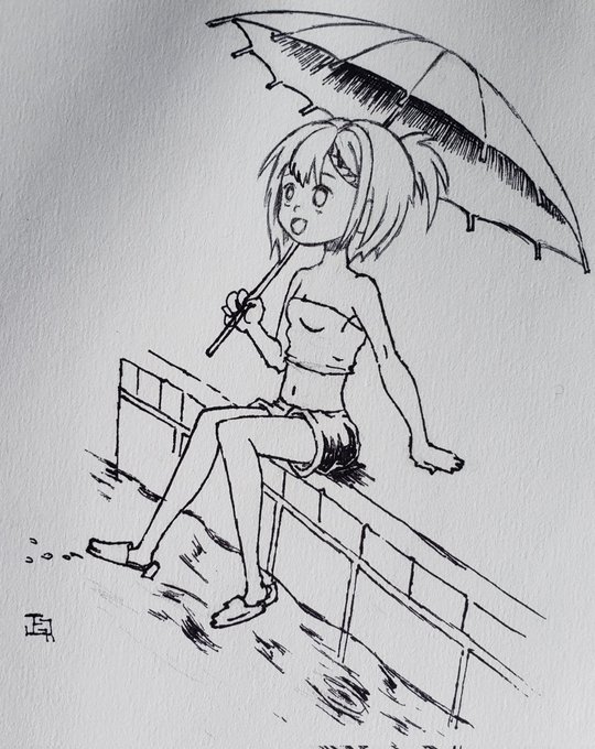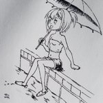 Día 19 Ponytail/sombrilla/piscina Luna con colita de 🐴 refrescándose en un día caluroso #inktober2022 #vnekoctober #rurinktober #rurillust #VtuberES